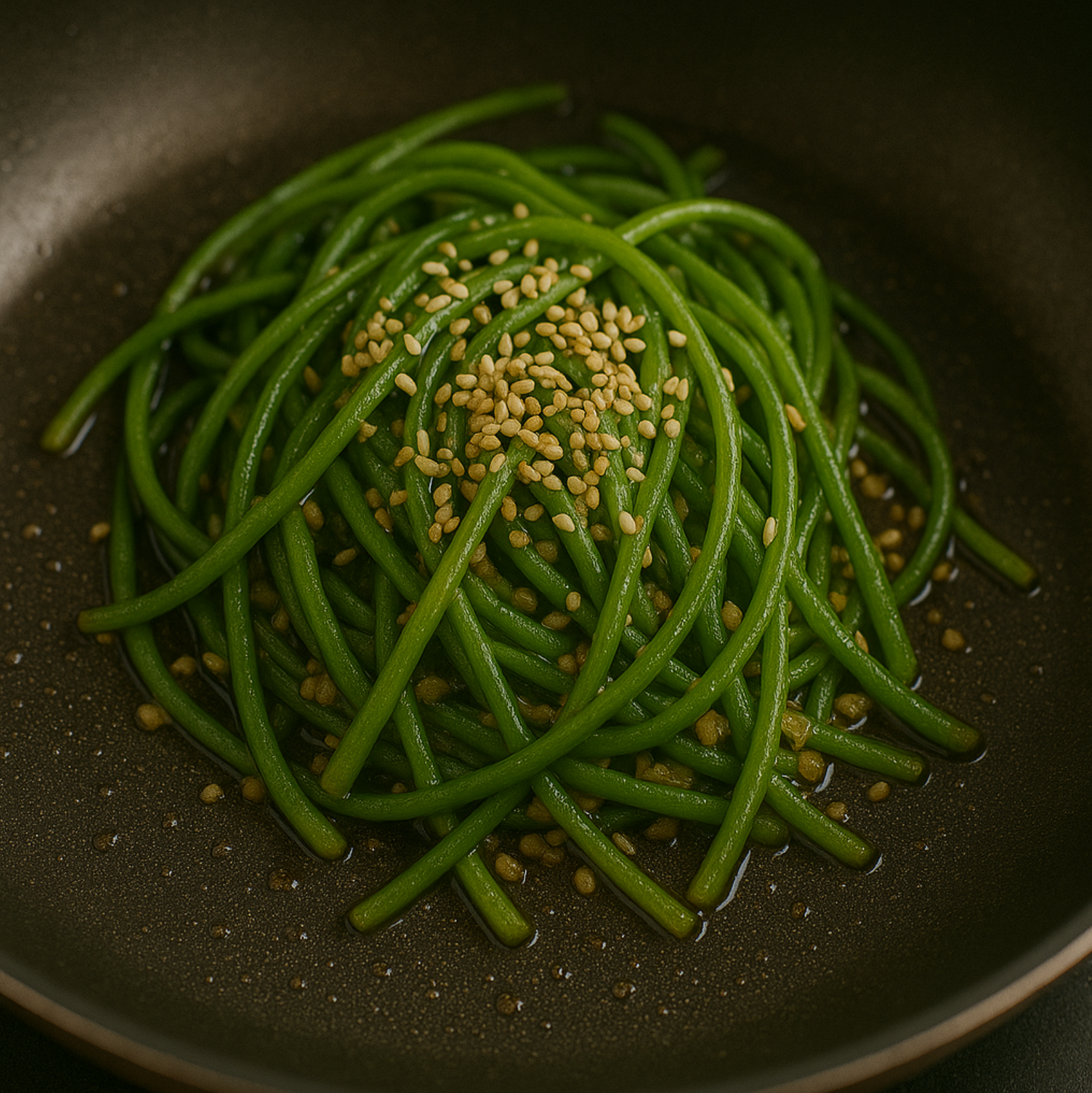 - 팬에 기름을 두르고 다진 마늘을 볶아 향을 냅니다.