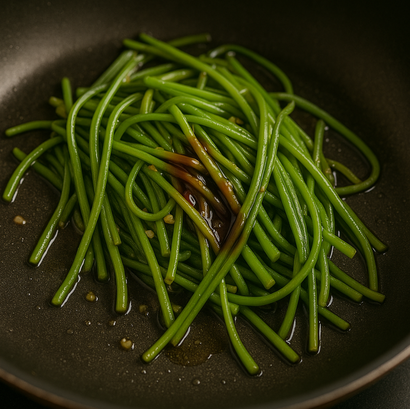 - 줄기를 넣고 간장으로 간을 맞춥니다.