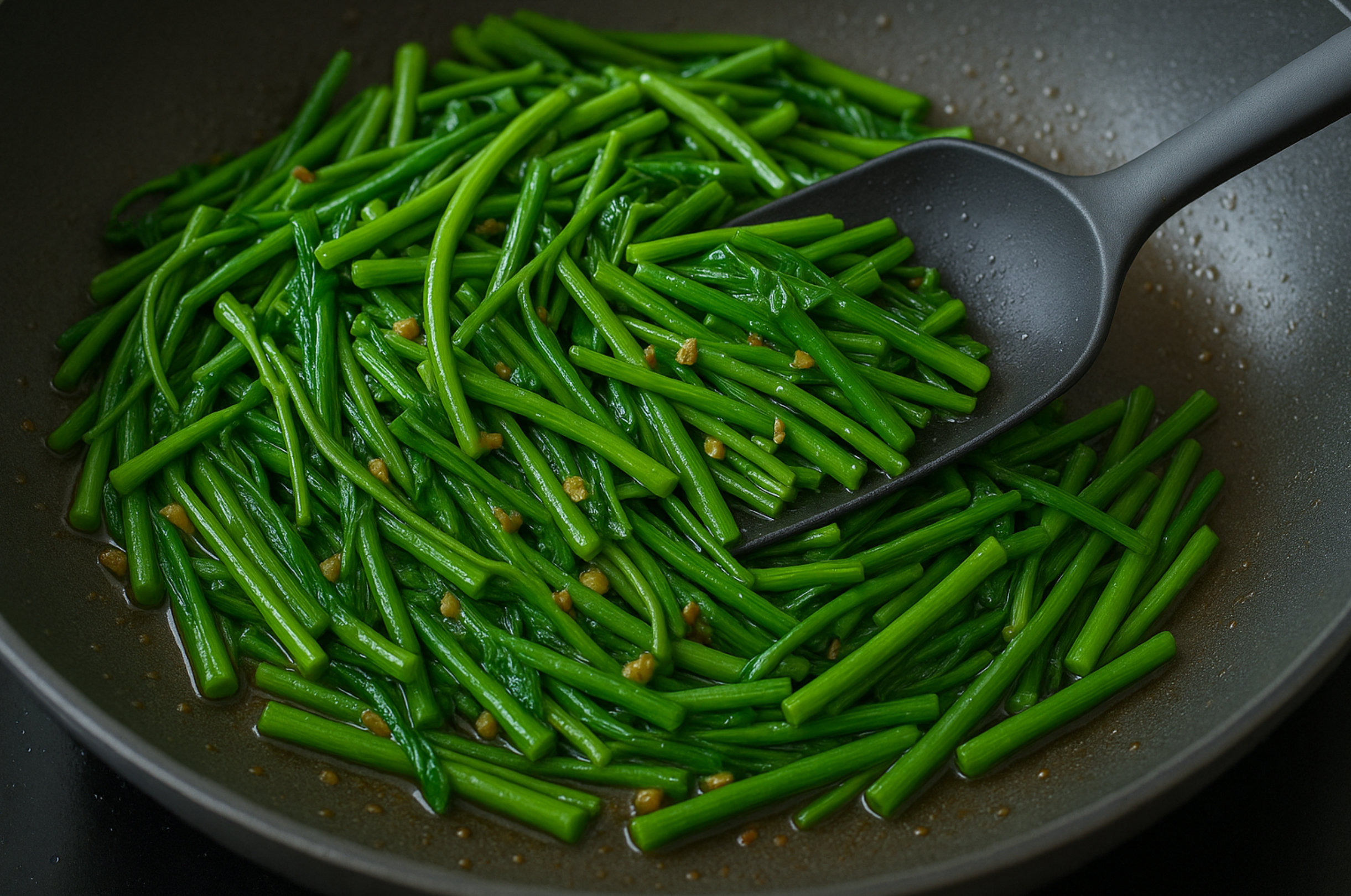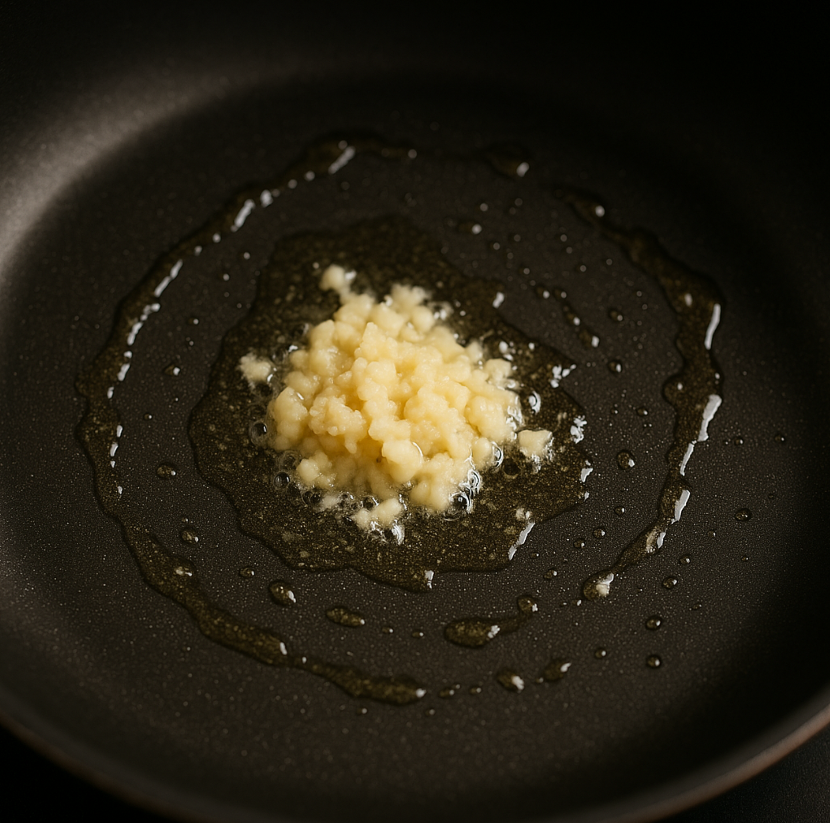 - 팬에 기름을 두르고 다진 마늘을 볶아 향을 냅니다.