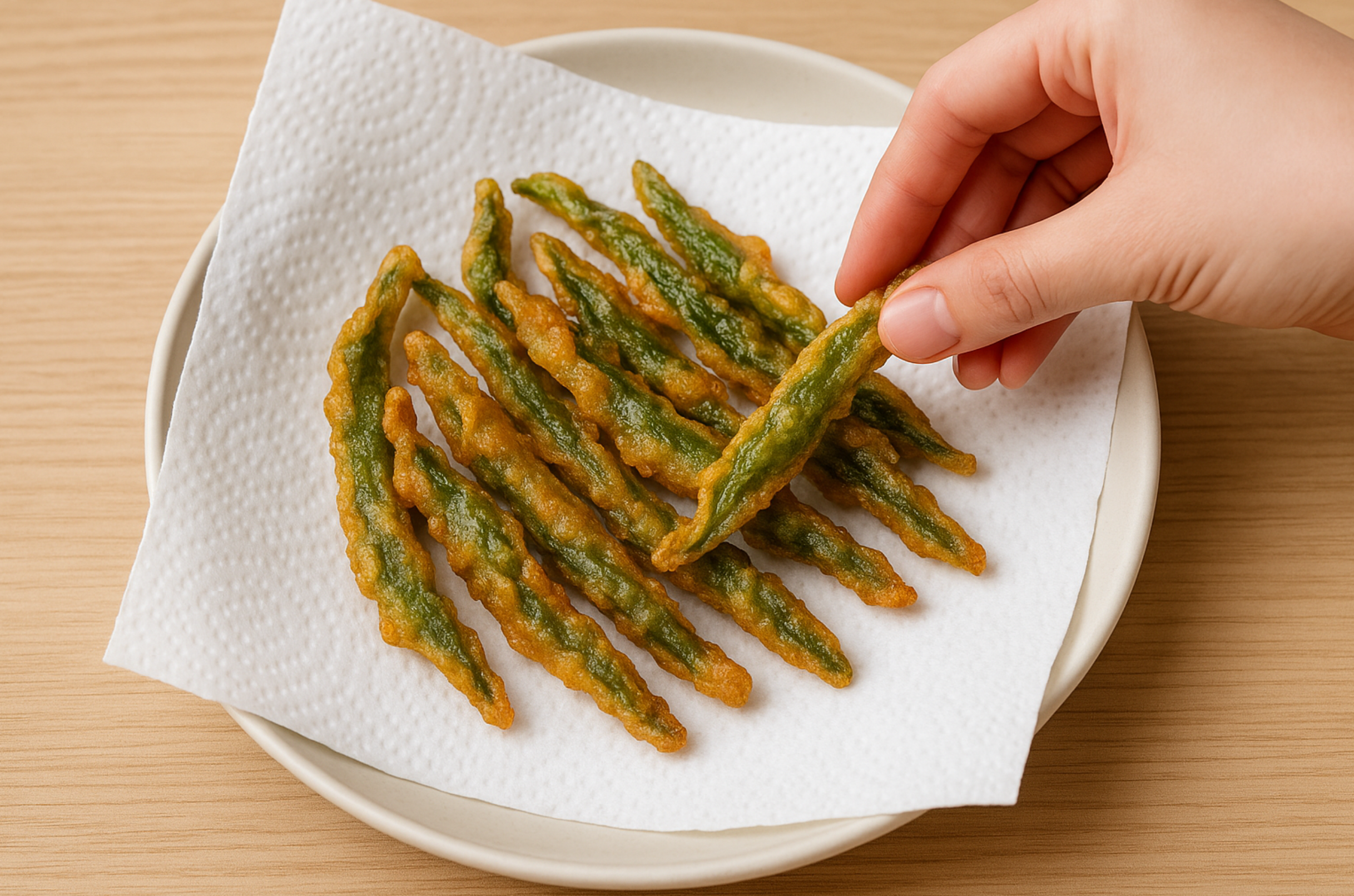 - 튀겨낸 후에는 키친타월에 올려 기름기를 제거합니다.