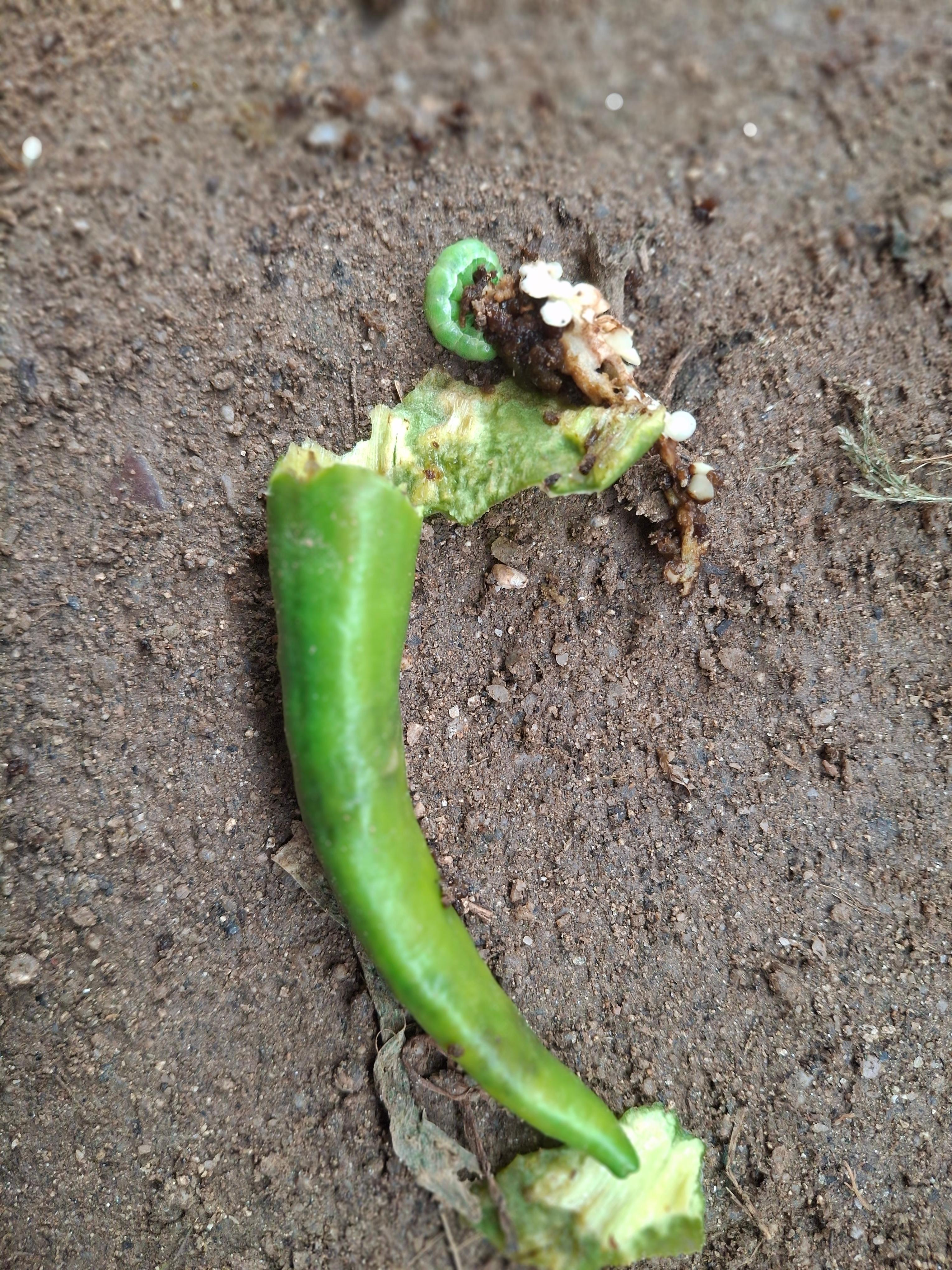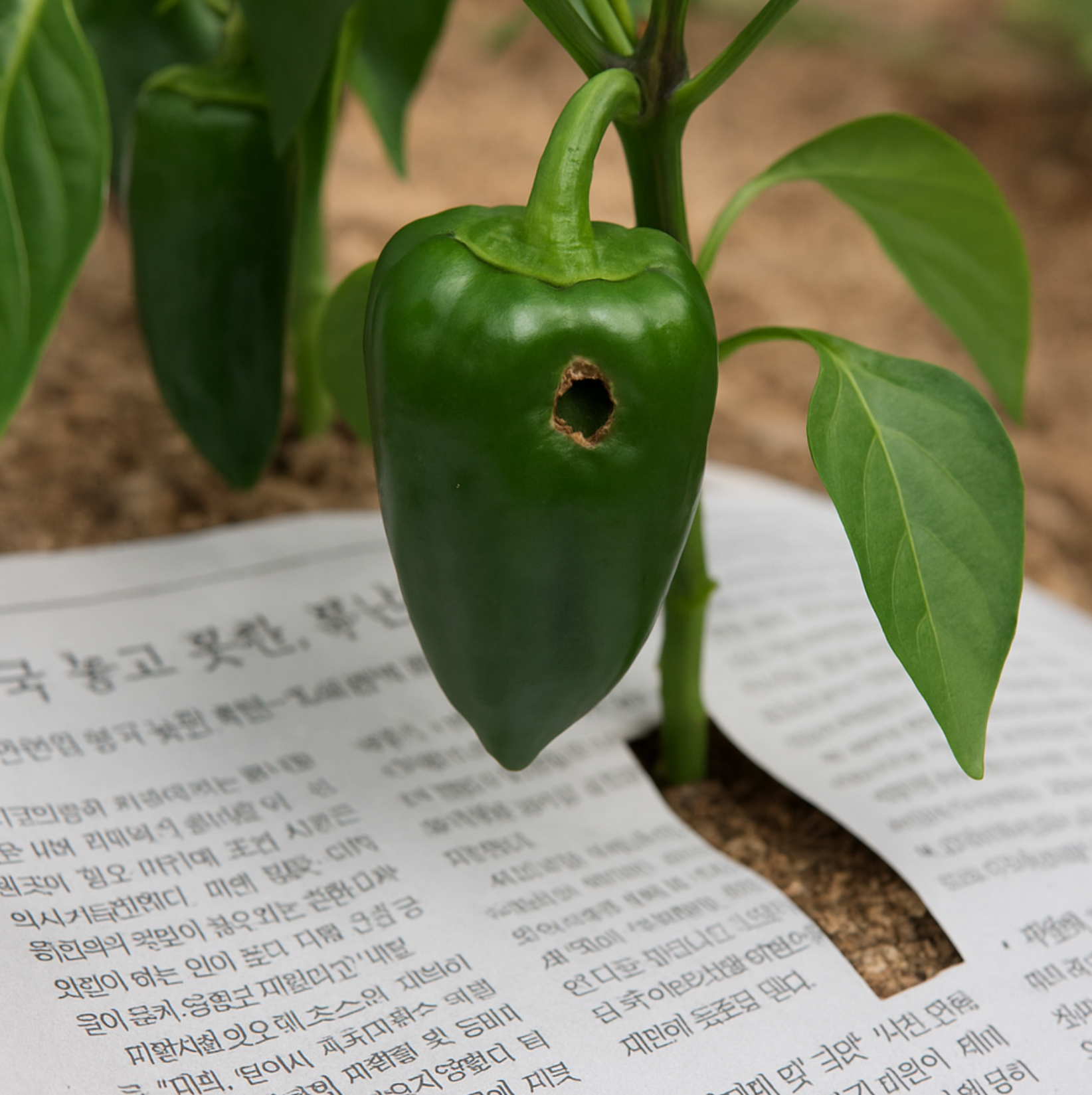- 고추 밑에 신문지를 깔아 애벌레가 떨어져도 다시 올라오지 못하게 합니다.