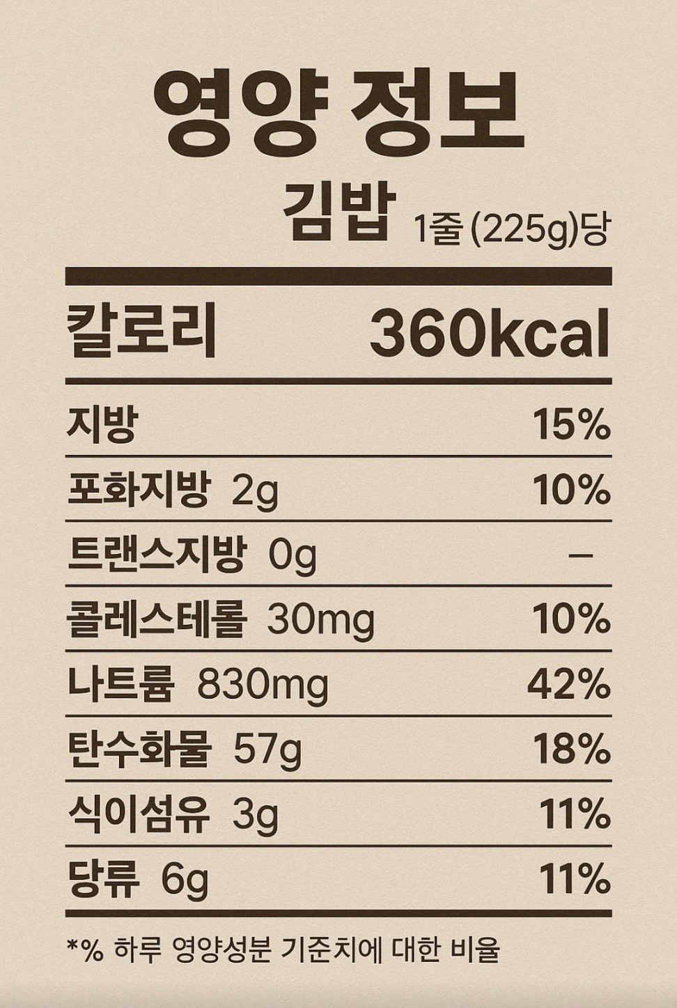 이번 글에서는 김밥의 평균 칼로리부터 재료별 차이, 다이어트할 때 먹어도 되는지까지 자세히 알아보겠습니다.