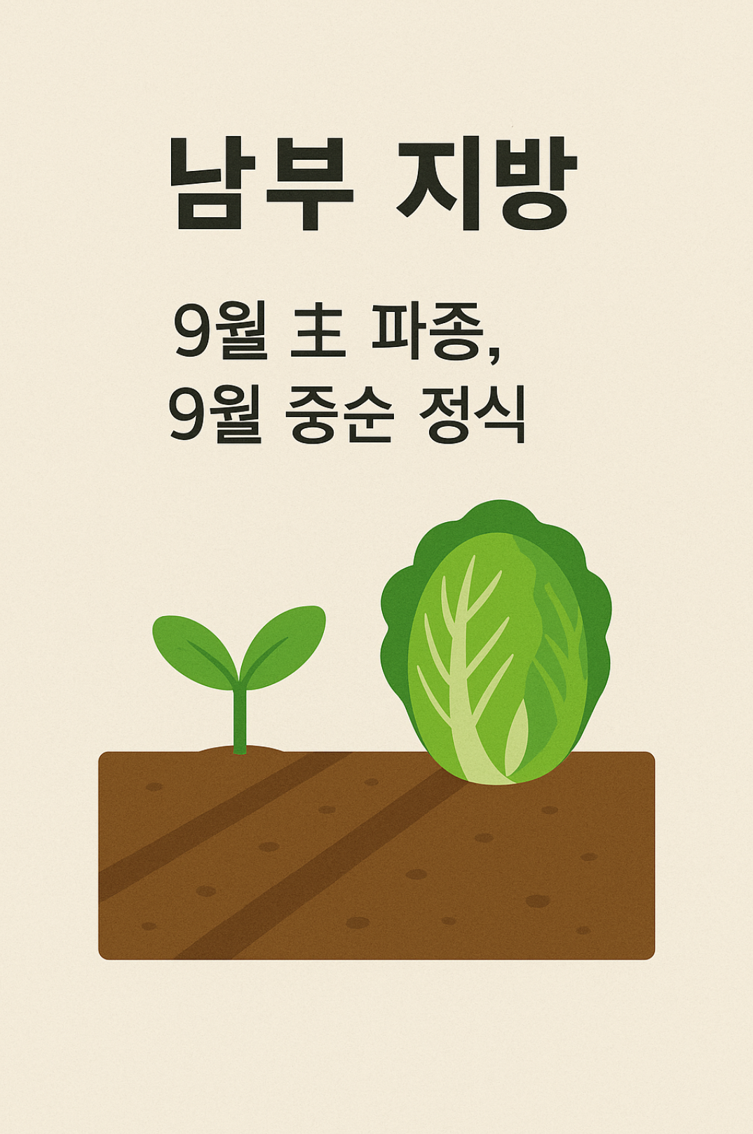 • 남부 지방 : 9월 초 파종, 9월 중순 정식