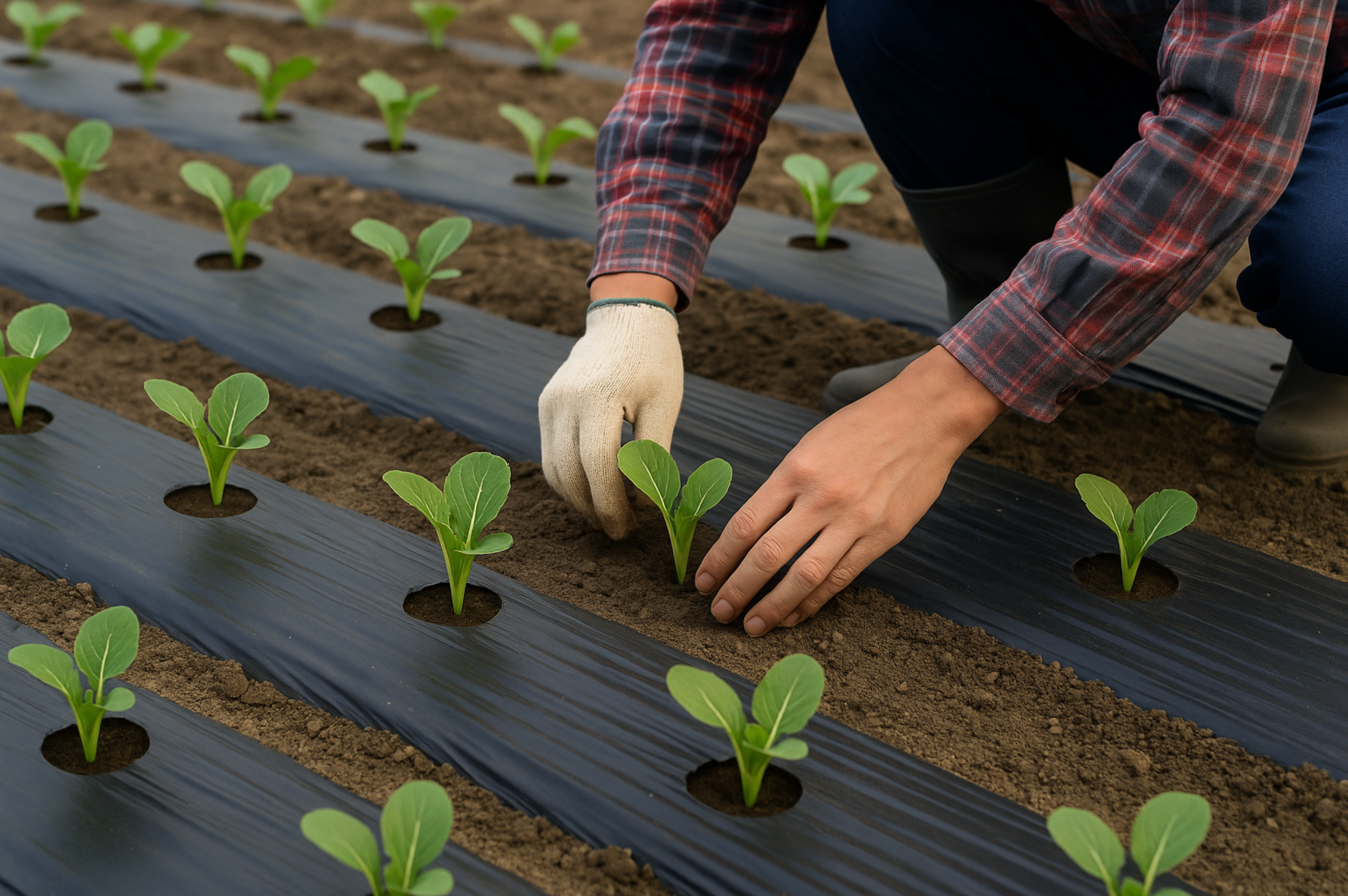 밭을 갈아엎은 후 두둑을 만들고, 멀칭 비닐을 깔아 잡초 발생을 줄이면 좋습니다.