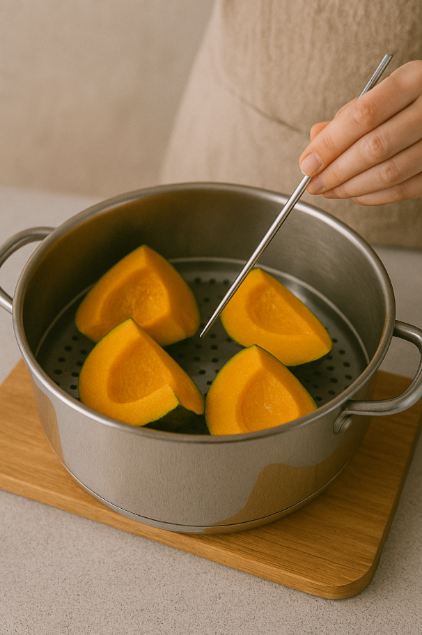 단호박을 가장 간편하고 맛있게 먹는 방법은 ‘찜’입니다. 전자레인지도 가능하지만, 수분을 살리고 싶다면 찜기나 냄비가 좋아요.