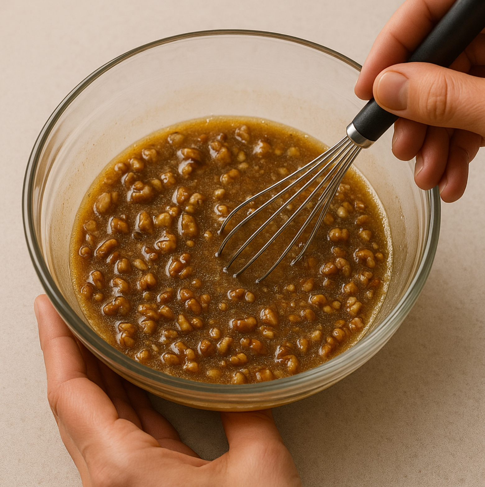 - 호두 필링 – 버터와 설탕을 녹인 뒤 달걀, 꿀, 잘게 부순 호두를 넣어 섞습니다.
