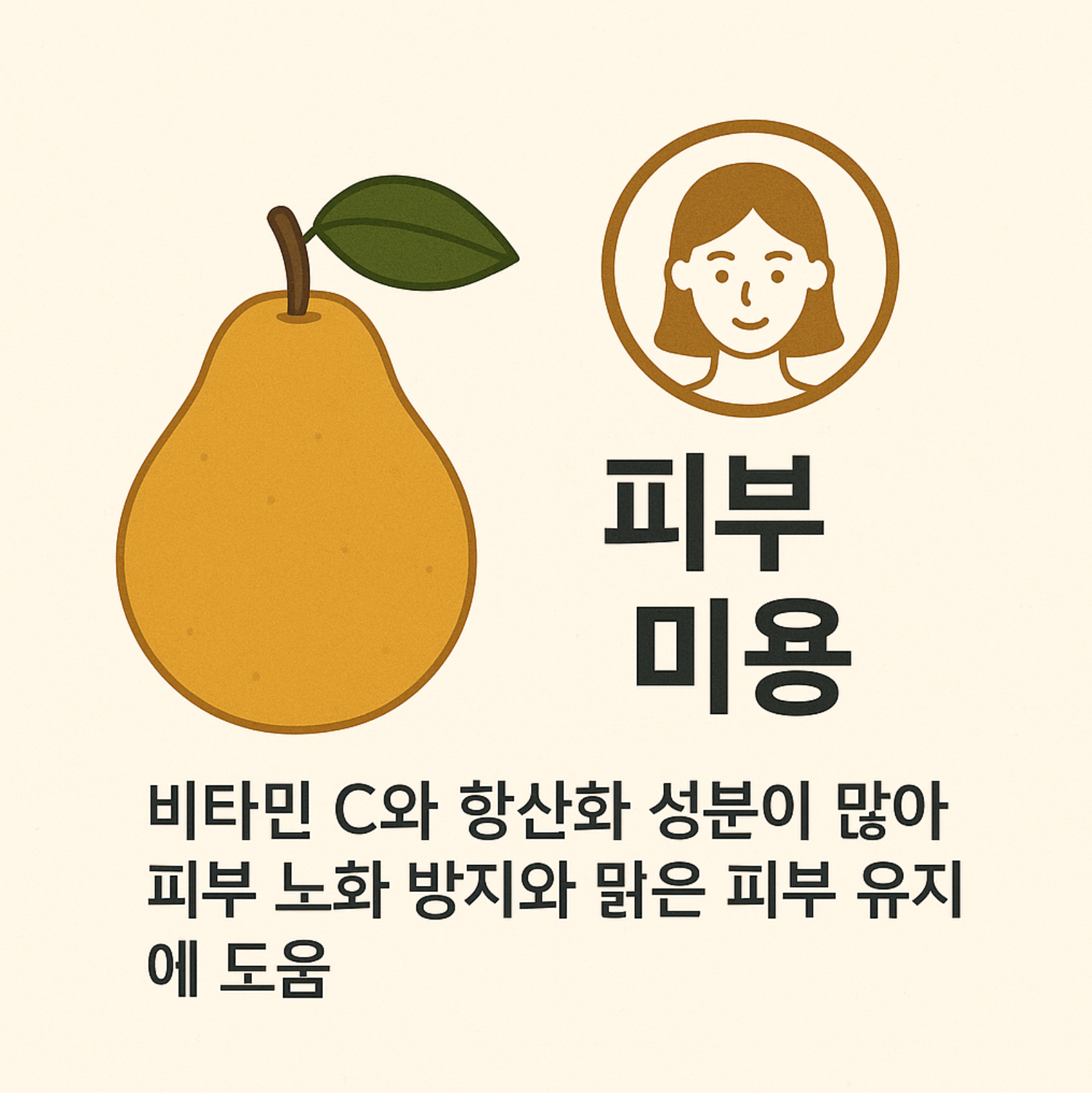 배에는 수분과 식이섬유가 풍부해 변비 예방과 소화 촉진에 탁월합니다. - 피부 미용