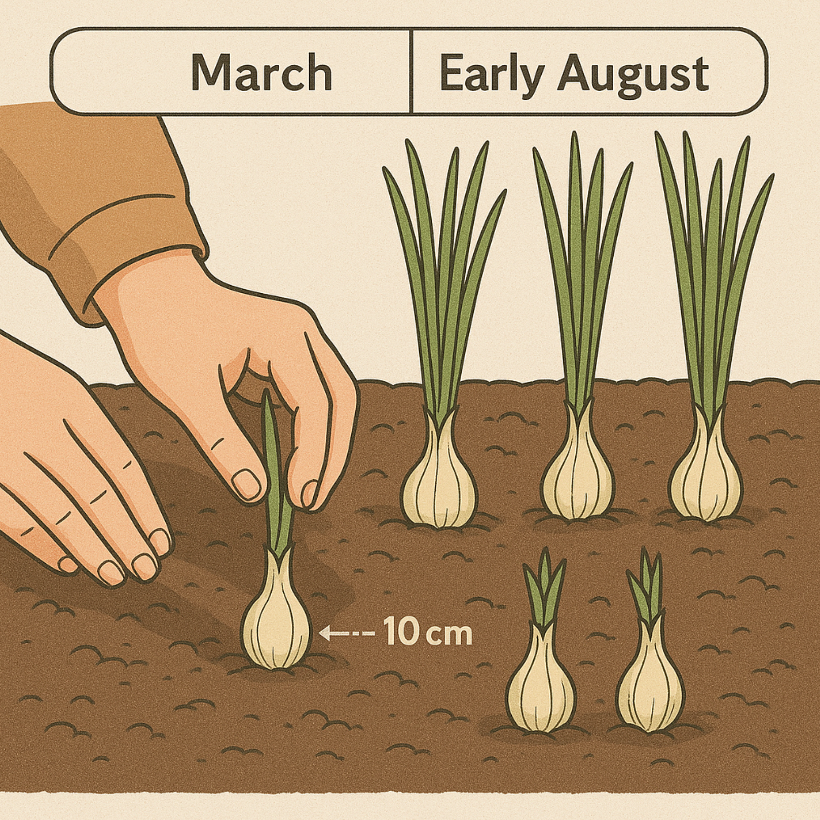 - 크기가 고른 쪽파 알뿌리를 준비해 10cm 간격으로 줄 맞춰 심습니다.