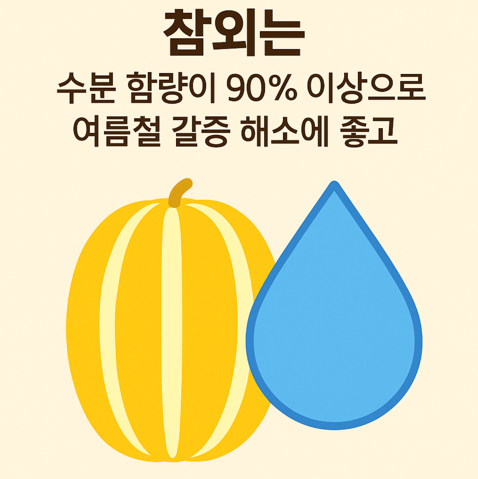 참외는 수분 함량이 90% 이상으로 여름철 갈증 해소에 좋고, 비타민 C가 풍부해 면역력 강화에 도움됩니다.