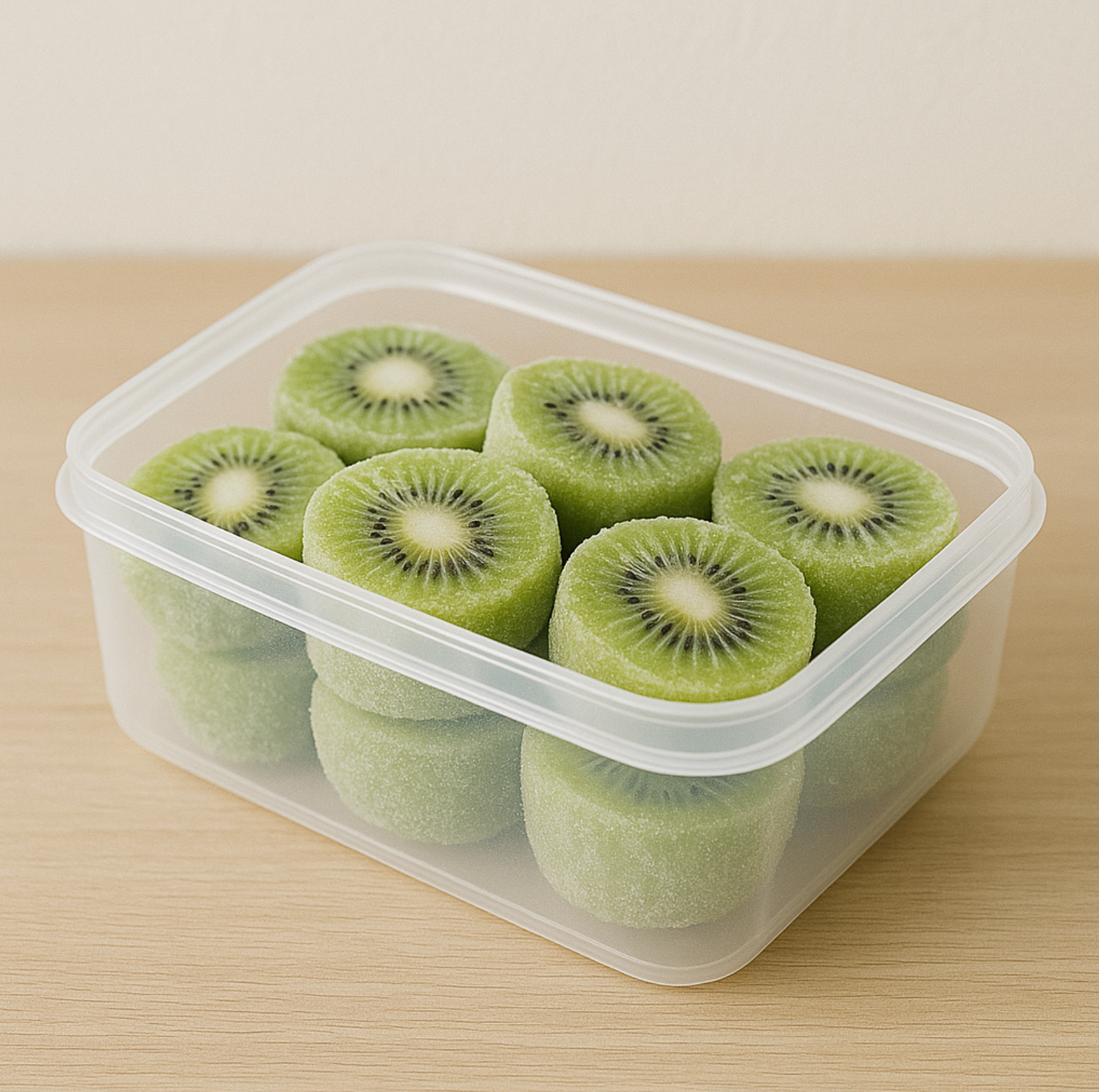 껍질을 벗기고 슬라이스한 키위를 냉동하면 스무디나 샐러드용으로 두고두고 활용할 수 있습니다.