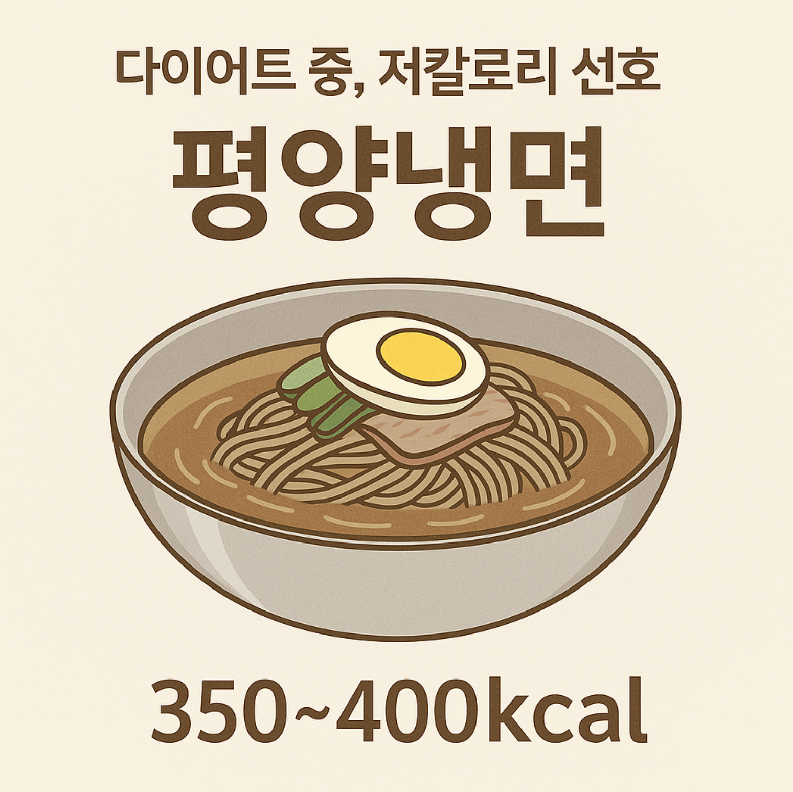 | 다이어트 중, 저칼로리 선호 | 평양냉면 🍜 |