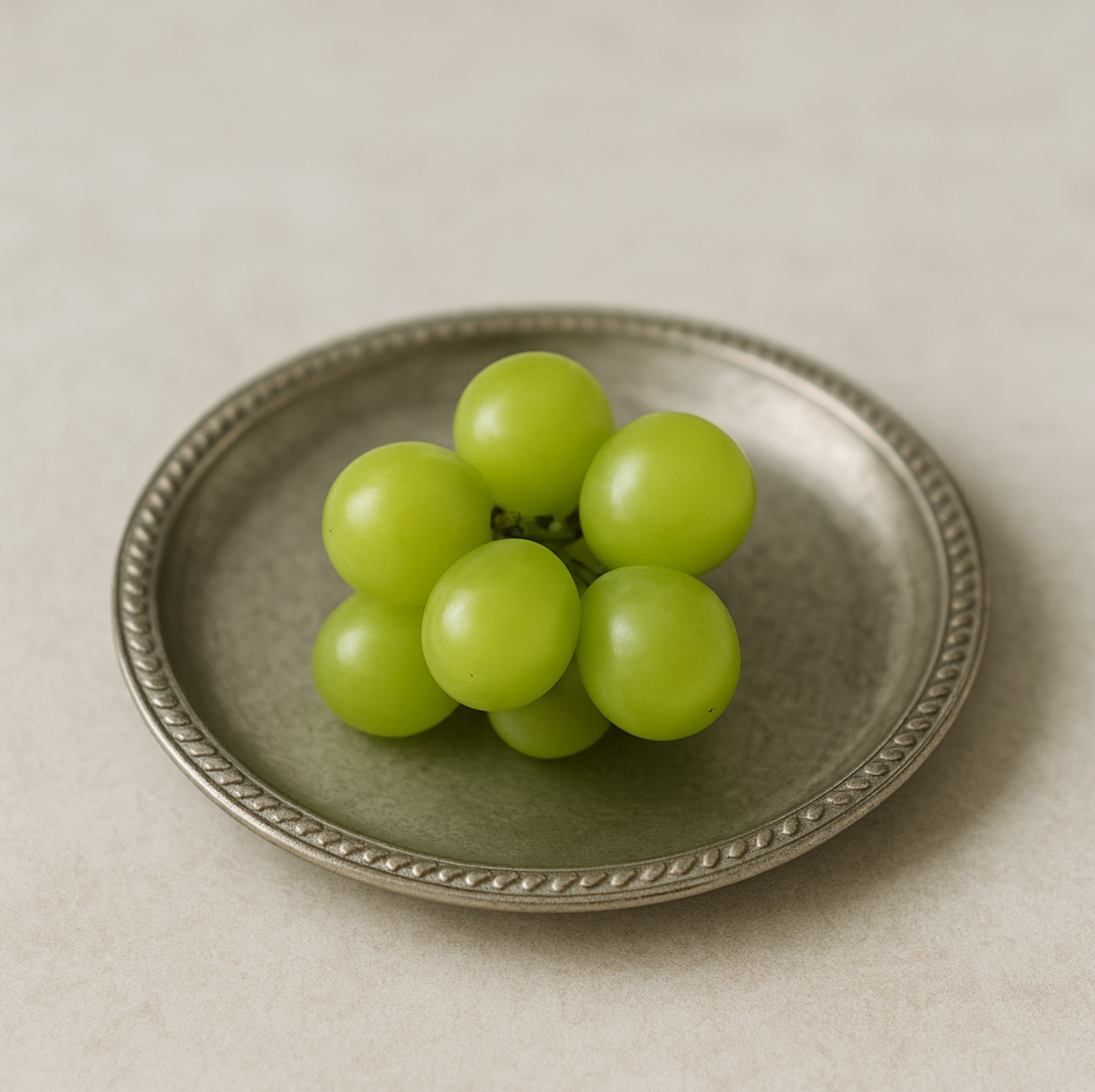가능하다면 단백질이나 식이섬유와 함께 먹어 혈당 상승을 완화하는 방법이 좋습니다. - 사진 추천 : 작은 접시에 소량만 덜어 놓은 샤인머스켓 사진 (절제된 이미지).