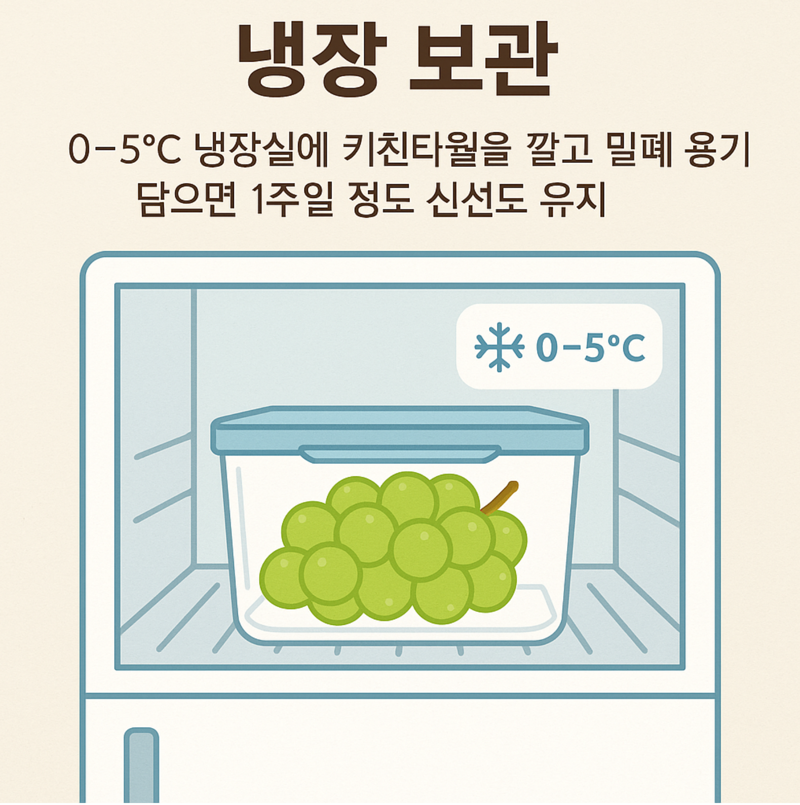 - 냉동 보관 : 송이째보다는 알알이 떼어 냉동하면 여름철 시원한 간식으로 활용 가능.