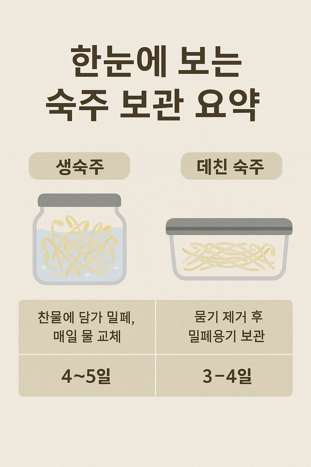 결론: 숙주나물 보관 핵심은 '수분 관리 + 밀폐'