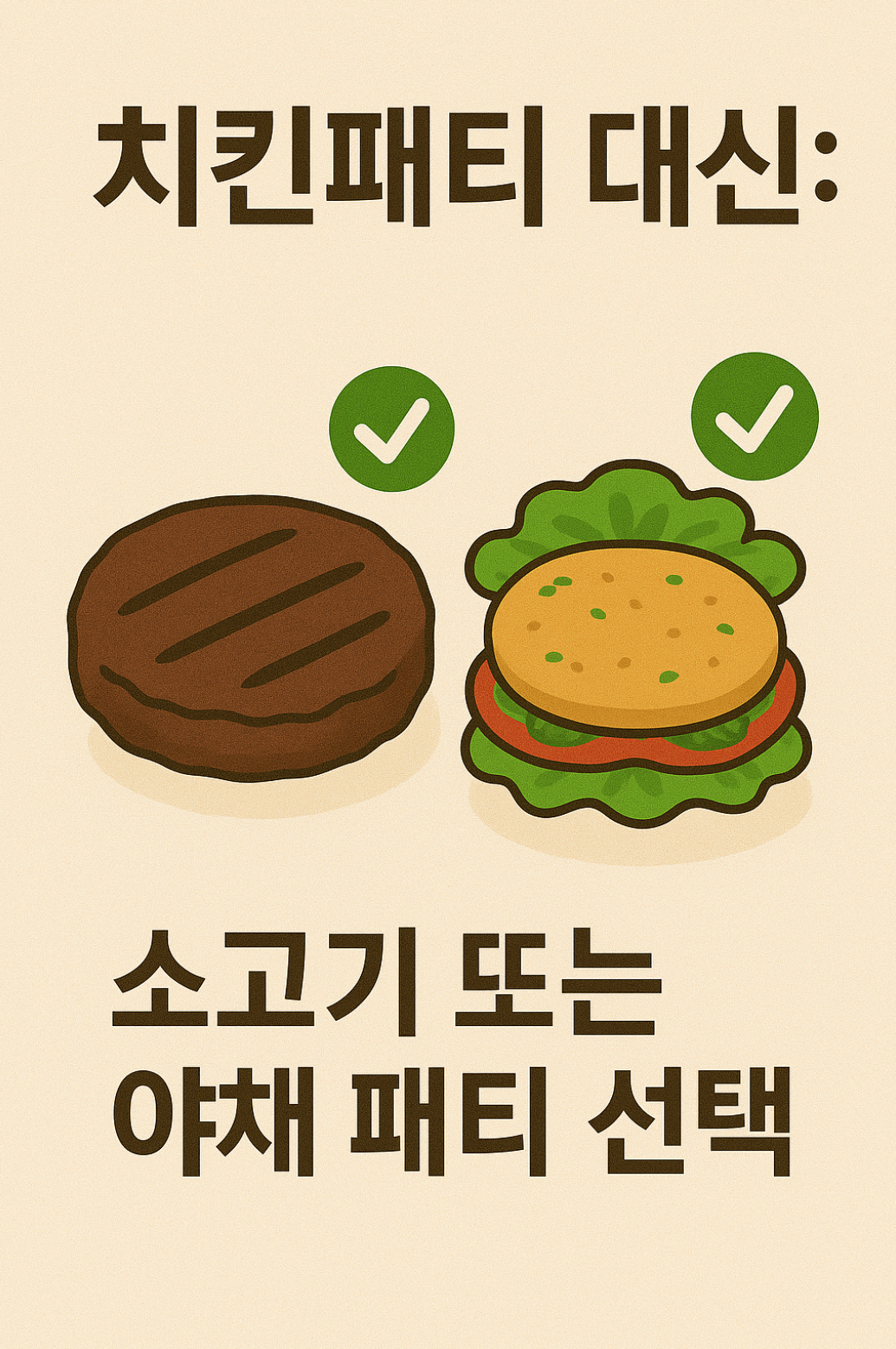 - 치킨패티 대신 소고기 또는 야채 패티 선택